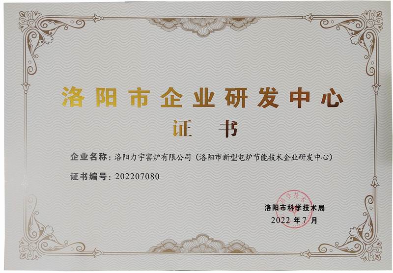 洛陽市企業研發中心證書